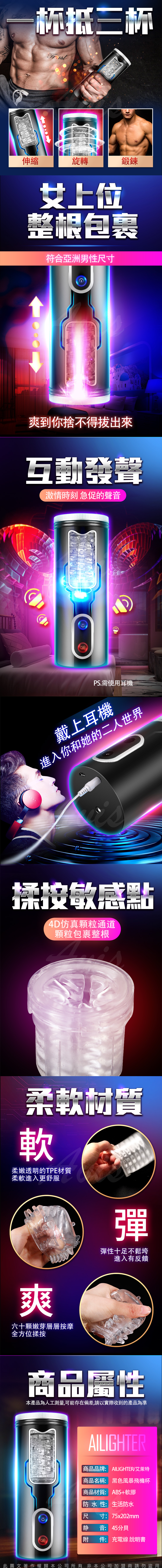 .主商品:艾萊特 黑色風暴 高速抽插伸縮旋轉+語音互動自動抽插自慰杯