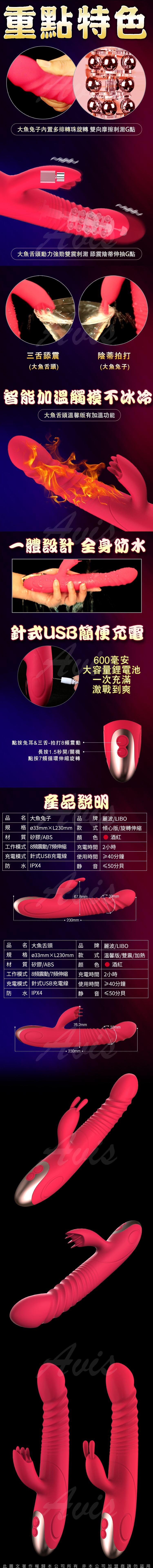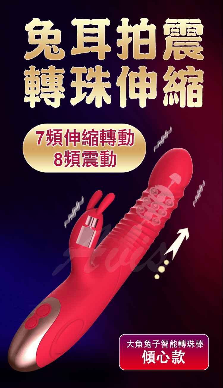 .商品名稱:LIBO-大魚兔子 8x7段伸縮變頻雙震G點轉珠按摩棒 傾心版