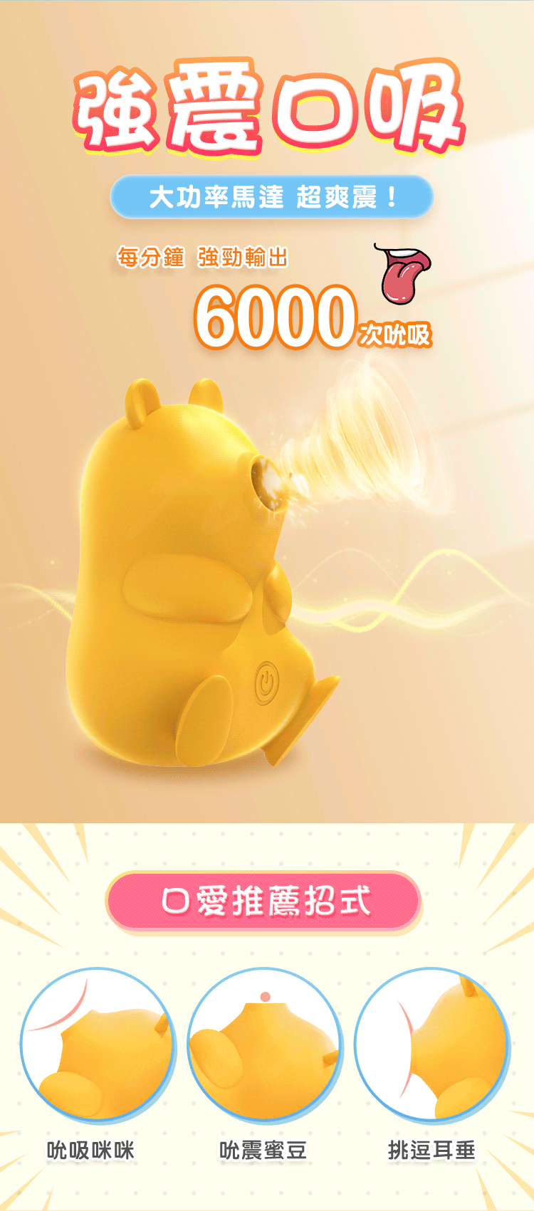 強震口吸,每分鐘強勁輸出6000次吸吮