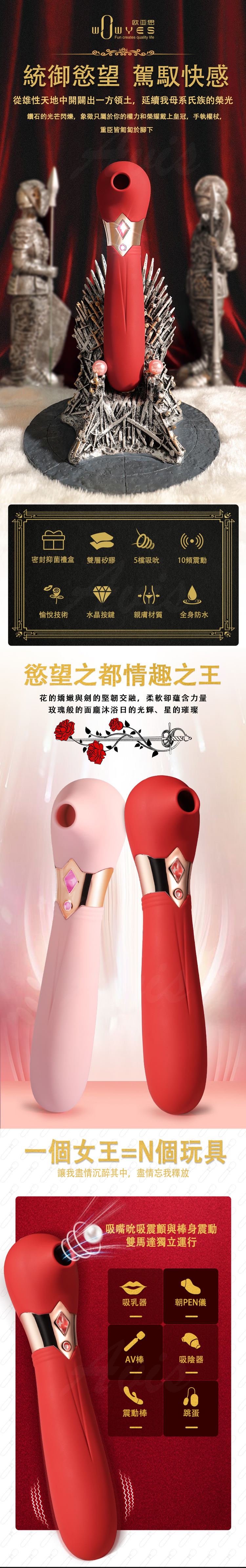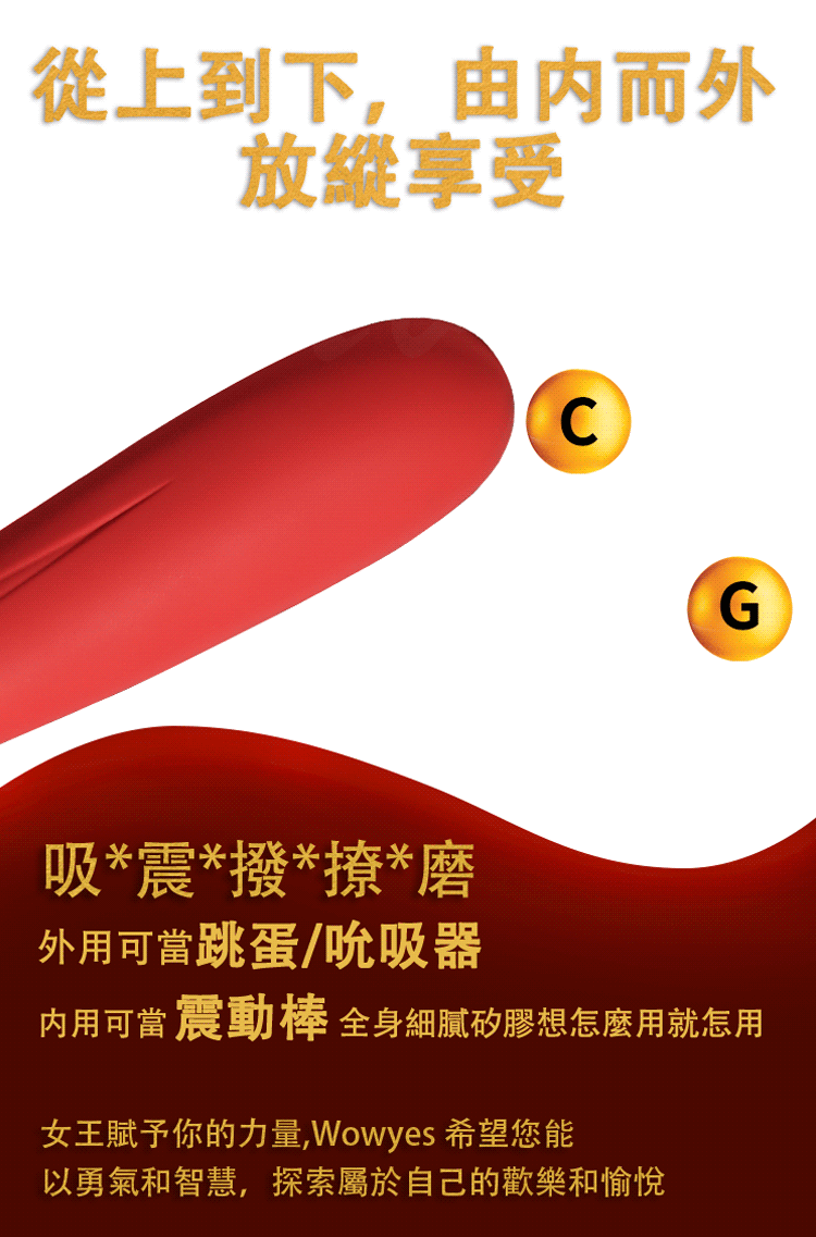 名稱:WOWYES-S4女王 5頻吸吮x10頻震動唇舌快感矽膠按摩棒-紅-尊享版