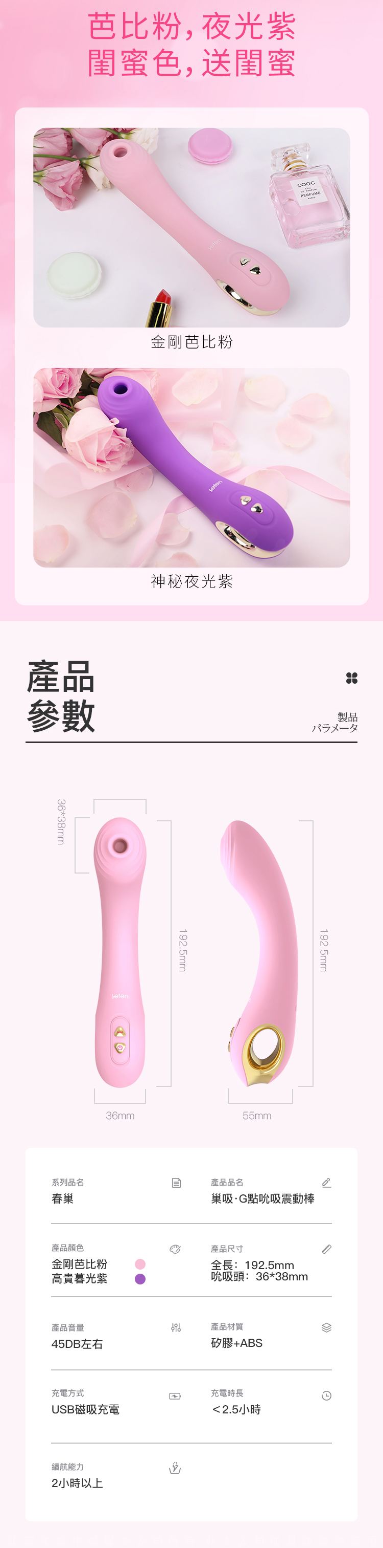 產品尺寸:全長:192.5mm/吮吸頭:36*38mm