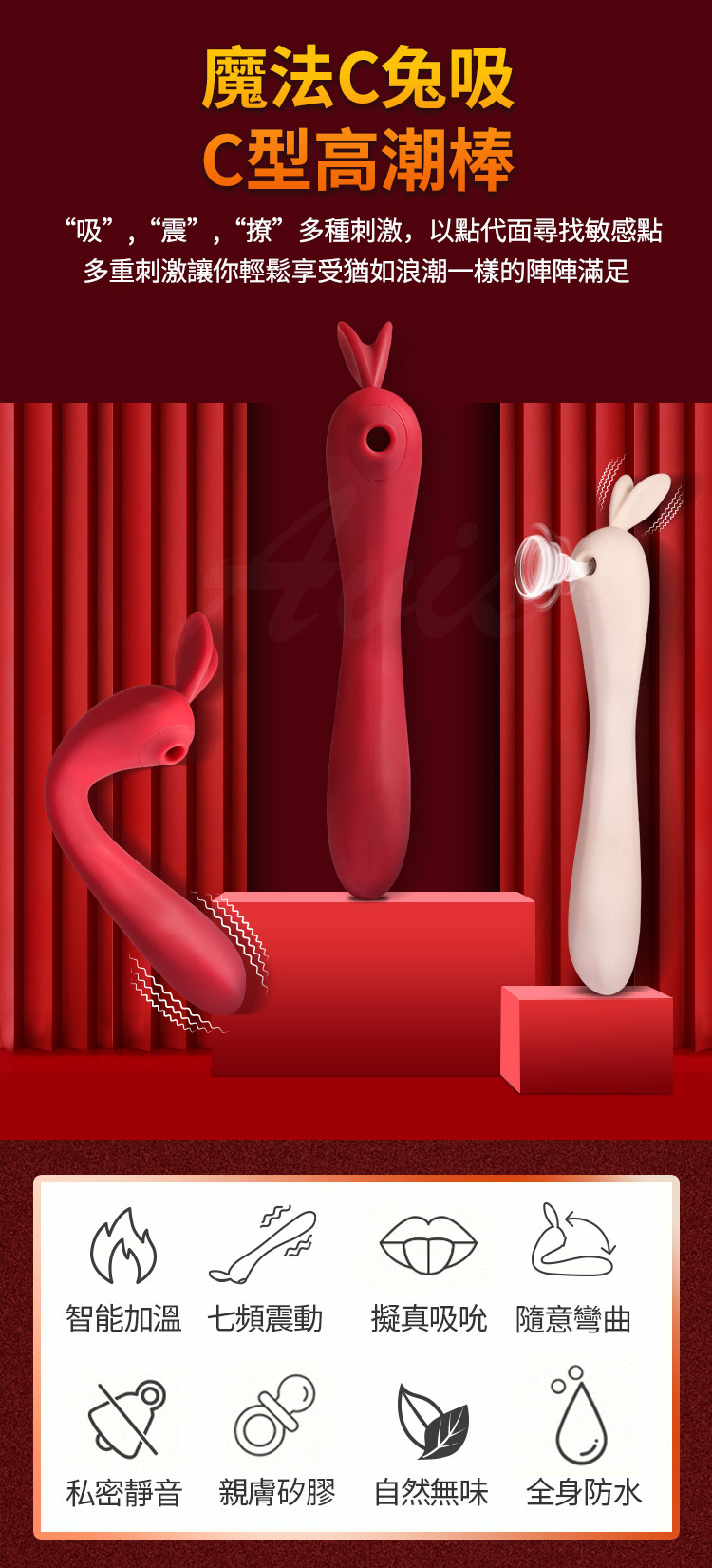 產品名稱:魔法兔 7段 吸吮震動 智能加溫 按摩棒-粉