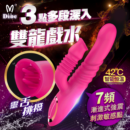Dibe-雙龍戲水 7段變頻雙伸縮靈舌震動加溫矽膠按摩棒