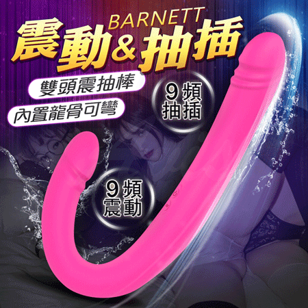 BARNETT 9頻 震動抽插雙頭按摩棒 內龍骨可彎-桃