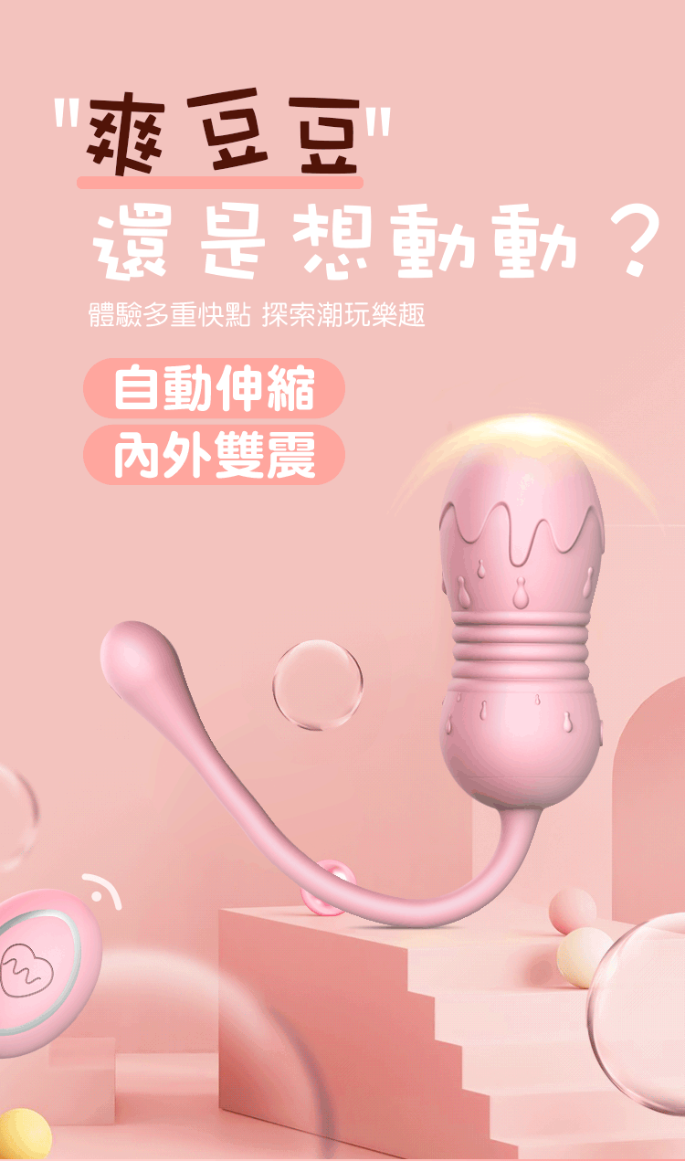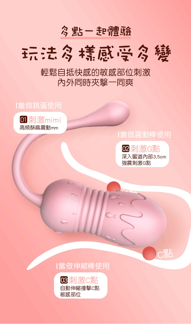 蜜愛冰淇淋無線遙控跳蛋擁有8段伸縮變頻輕鬆自邸敏感部位,刺激內外同時夾擊一同爽。無線遙控讓您一鍵在手,即使在體內也可達遙控,從此她的激情逃不出你的掌心。震動同時還全自動伸縮動力強勁,一次強有力的撞擊勝過多次慢吞吞的摩擦。此款輕鬆好入體,比手指略大一些入體毫無壓力,不撐大仙女們的嬌嫩蜜穴喔~~