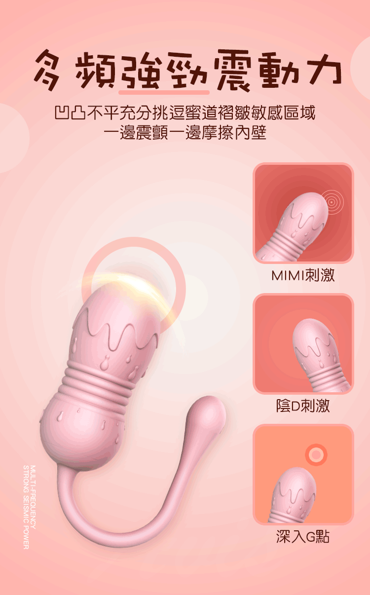 功能:8段伸縮變頻震動、生活防水、無線遙控
