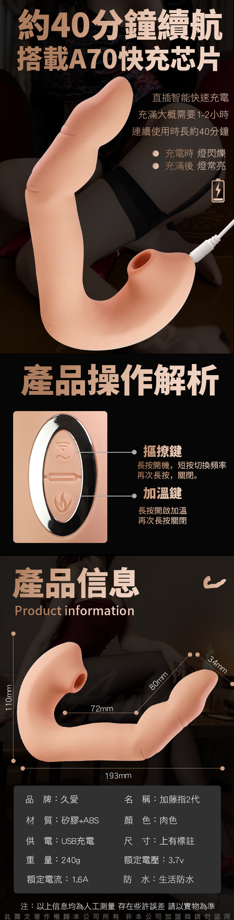 名 稱:加藤指2代 8頻摳 吸吮 一鍵加溫 矽膠充電按摩棒