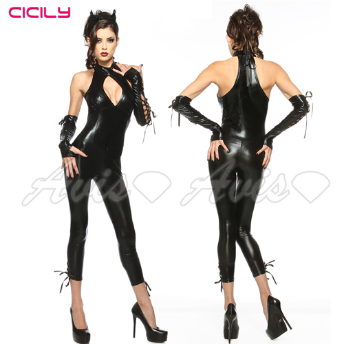 虐戀精品CICILY-魔女神兵 繞頸美胸 塗膠仿皮性感彈力 緊身膠衣