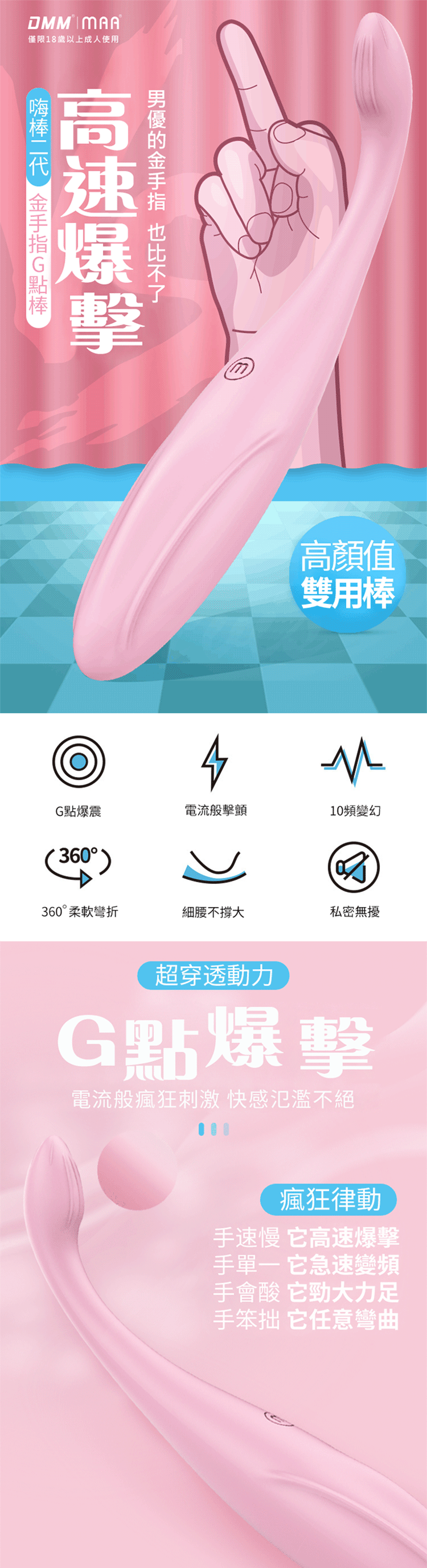 名稱:DMM-嗨棒2代 金手指蜜豆G點按摩棒-粉