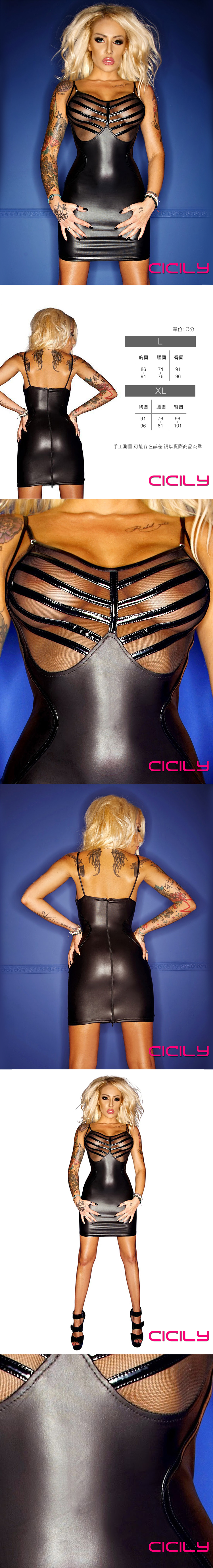 CICILY 女王心境 透視網紗吊帶連衣短裙 漆皮膠衣 XL