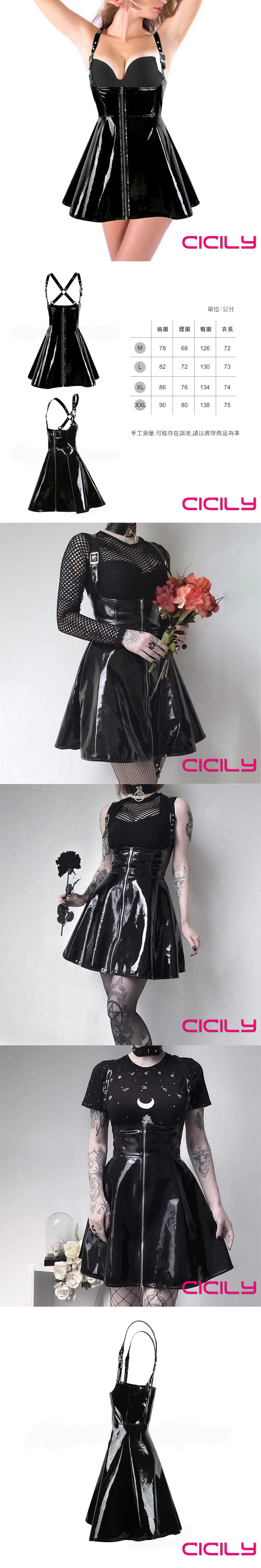 CICILY 誘惑天使 背帶漆皮短裙服裝 漆皮膠衣 黑 M