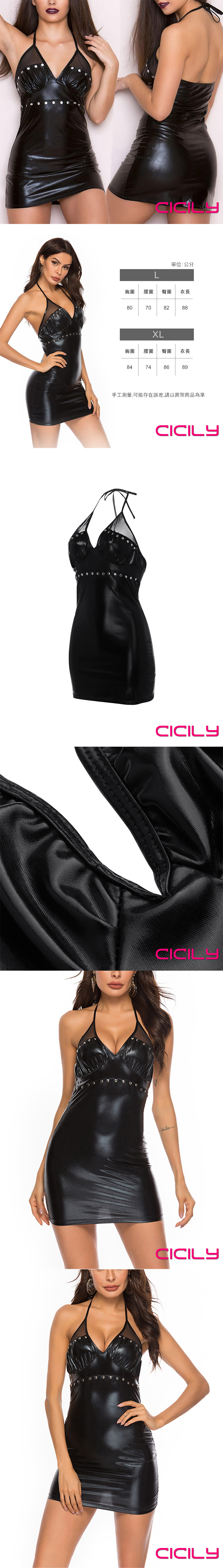 .主商品:CICILY 皮革鉚釘吊帶裙 漆皮膠衣 黑 XXL