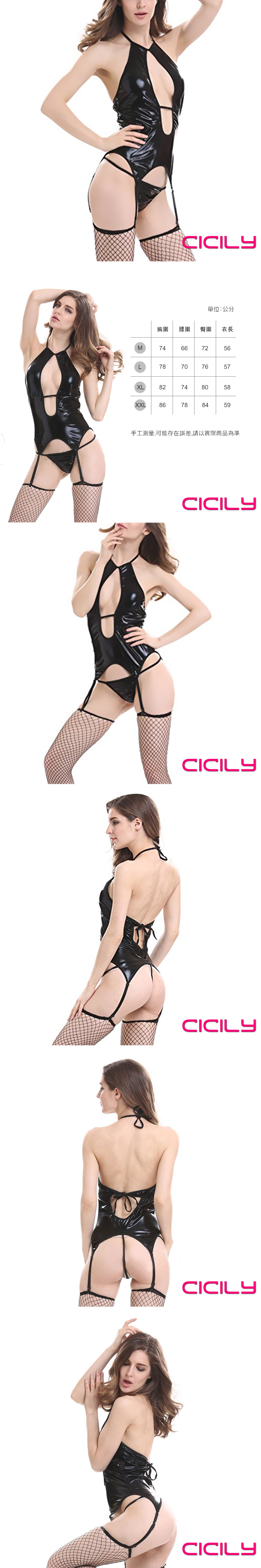 .主商品:CICILY 國王皇后 鏤空漆皮質誘惑連體衣 黑 L