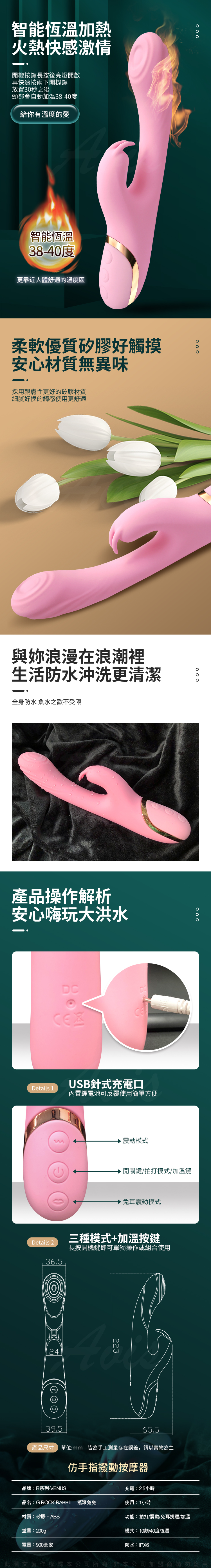 Venus搖滾兔兔 ACGU四點爆發 仿手指撥動按摩器-加溫款