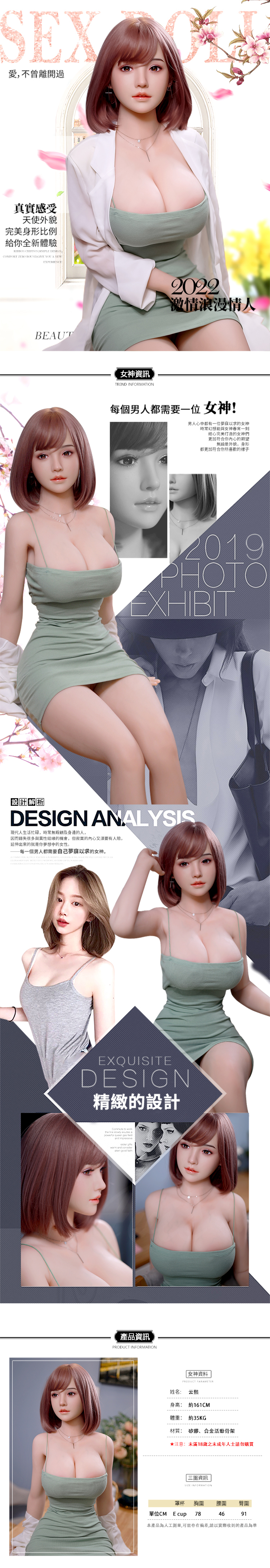 JYDOLL|矽膠實體真人娃娃|云熙161cm 大胸款 假髮