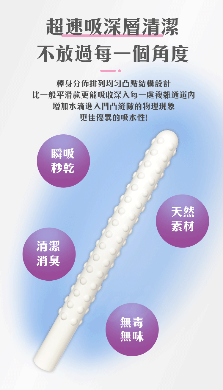 比一般平滑款更能吸收深入每一處複雜通道內