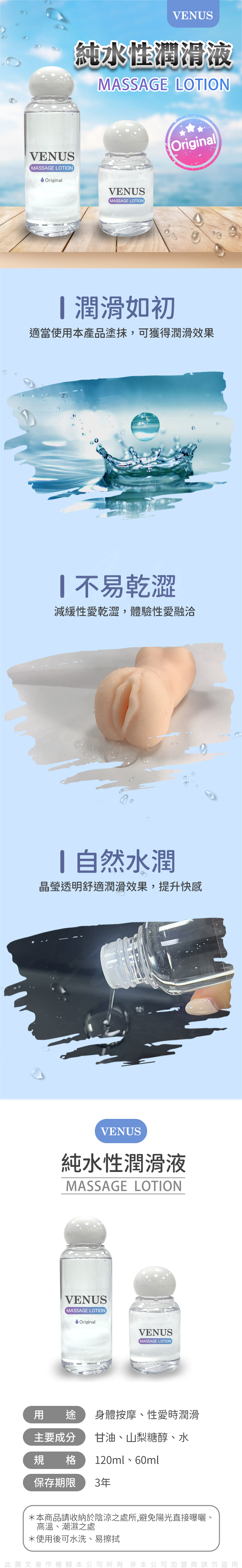 用途:身體按摩、性愛時潤滑主要成分:甘油、山梨糖醇、水規格:120ml、60ml保存期限:3年