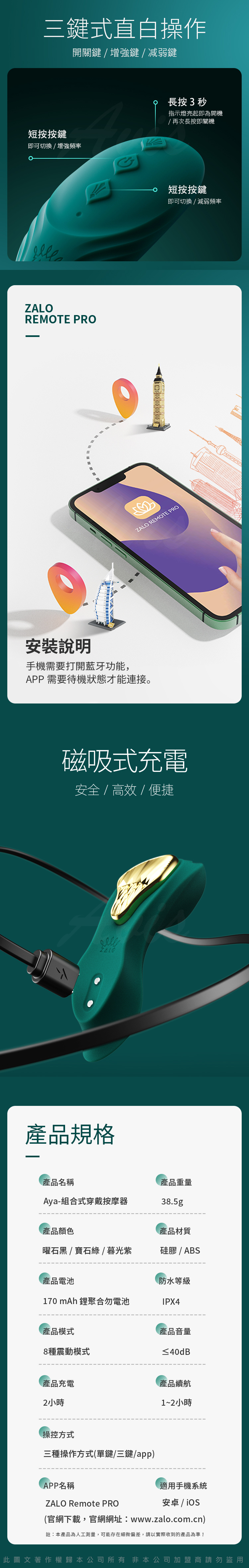 Zalo|Aya|組合式穿戴按摩器-紫色