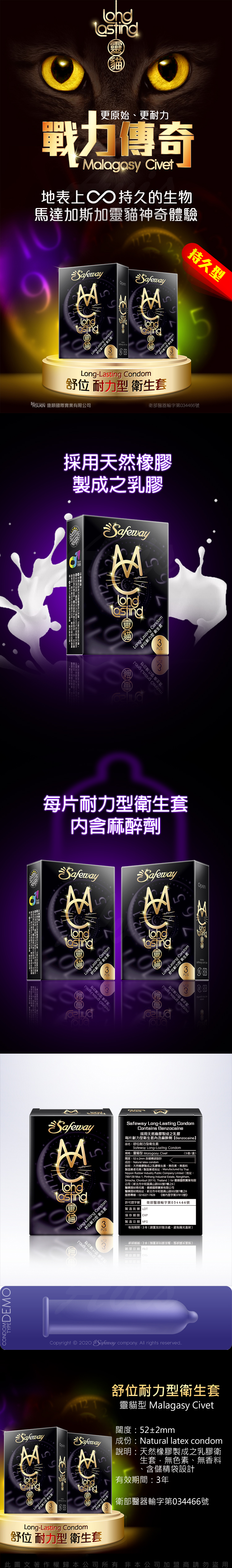 Safeway舒位|耐力型衛生套|靈貓 保險套 3入裝