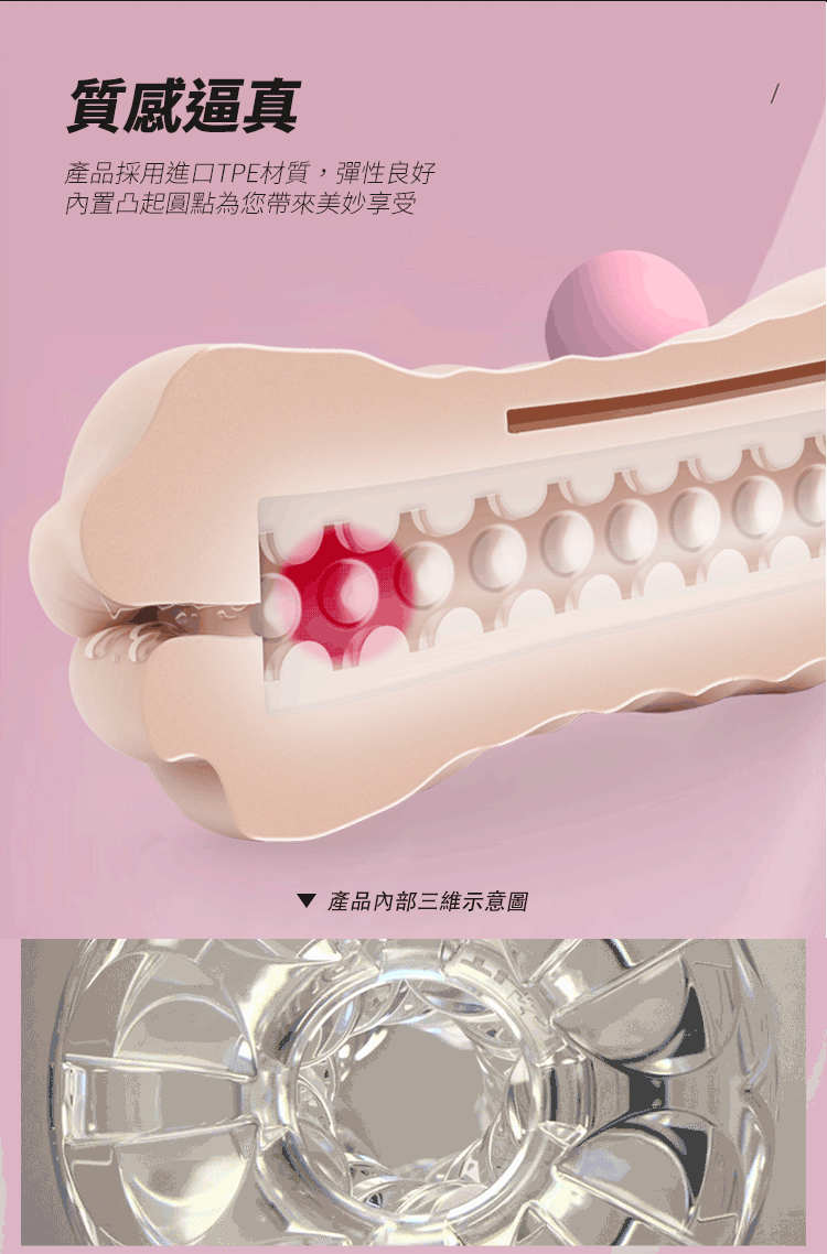 2、產品內壁凸起按摩您的器官,營造性愛體驗;