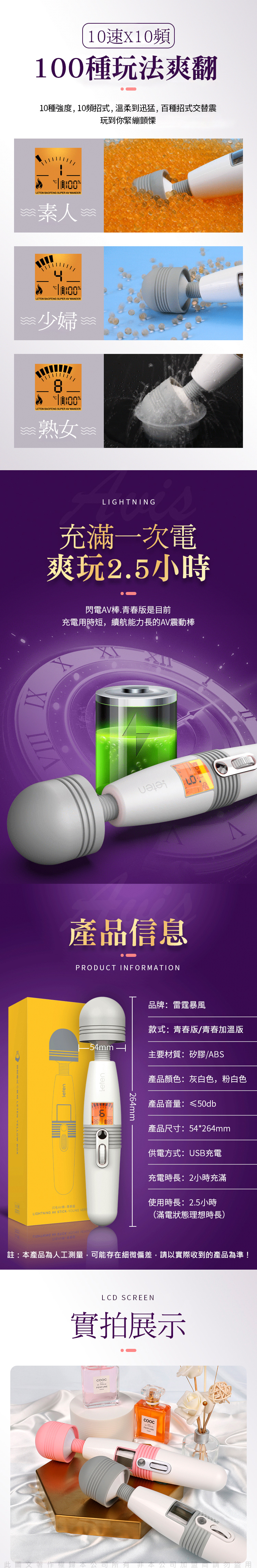 產品名稱:LETEN|閃電AV按摩棒|青春版