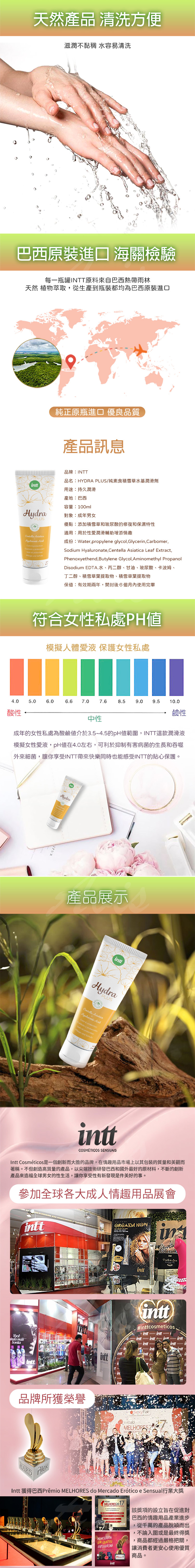 品名:巴西Intt|HYDRA PLUS|純素積雪草超保濕潤滑液 100ml用途:持久潤滑產地:巴西容量:100ml對象:成年男女優點:添加積雪草和玻尿酸的修復和保濕特性適用:用於性愛潤滑輔助增添情趣保值:有效期兩年,開封後6個月內使用完畢