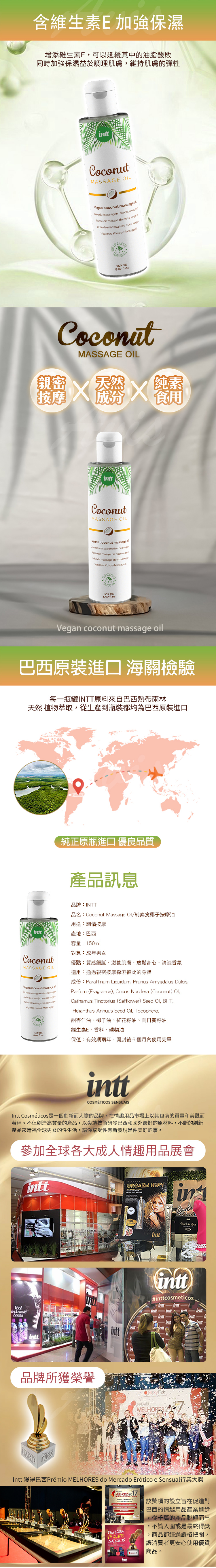 品名:巴西Intt|純素椰子按摩油 150ml