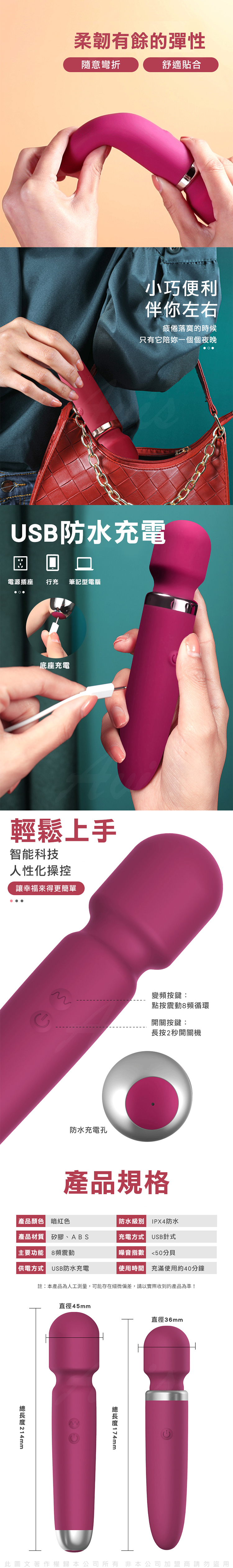 產品特色:8種震動頻率、8種震動速度