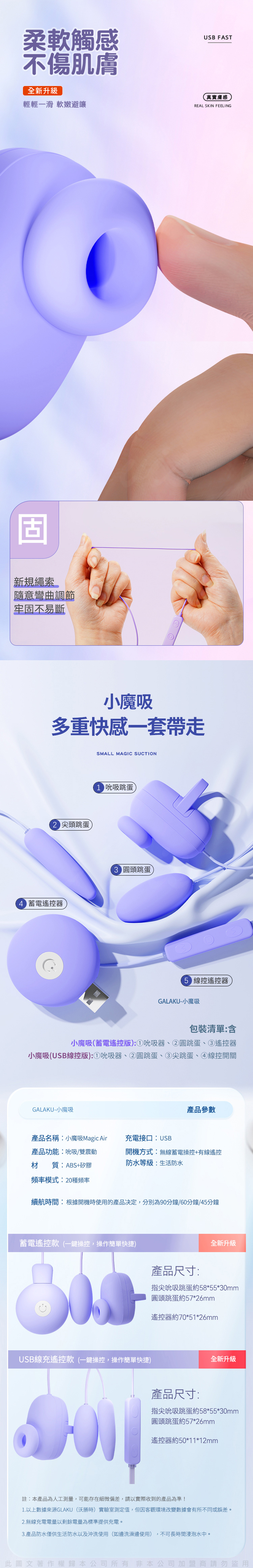 產品名稱:GALAKU|小魔吸|吸吮震動跳蛋 USB充電款 紫