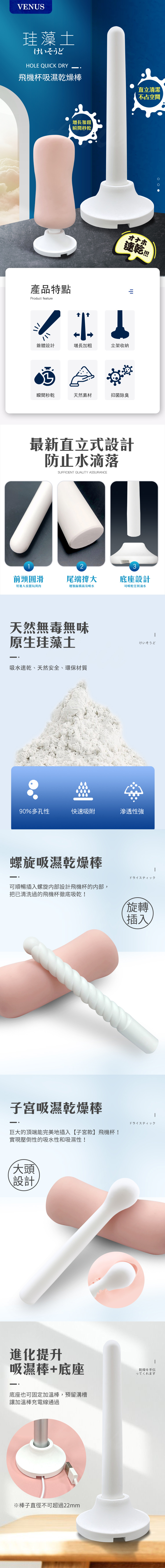 名稱:VENUS|飛機杯乾燥吸濕棒|硅藻土棒-直立款
