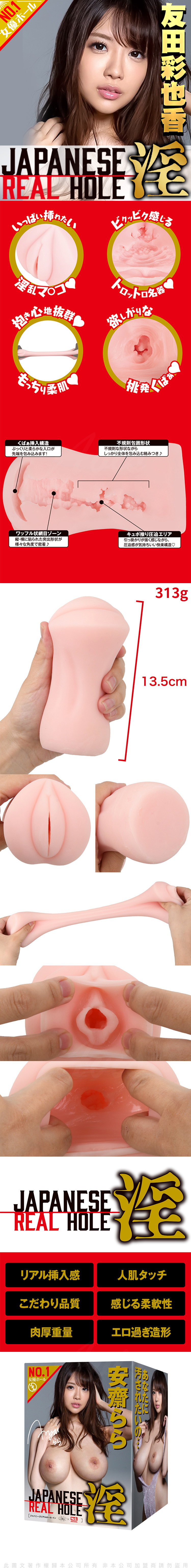 女優名器的最高峰『JAPANESE REAL HOLE 淫』繼續發功,這次到安齋拉拉 (RION宇都宮紫苑 改名 安齋らら) 擔當主角!真正Made in Japan,採用高質的矽膠製造,非常有彈性,更有人肌感覺!內部構造較為短淺,設有大型肉塊,帶給你G 點的壓迫感覺,配合柔軟的素材,給你緊貼的真實感。