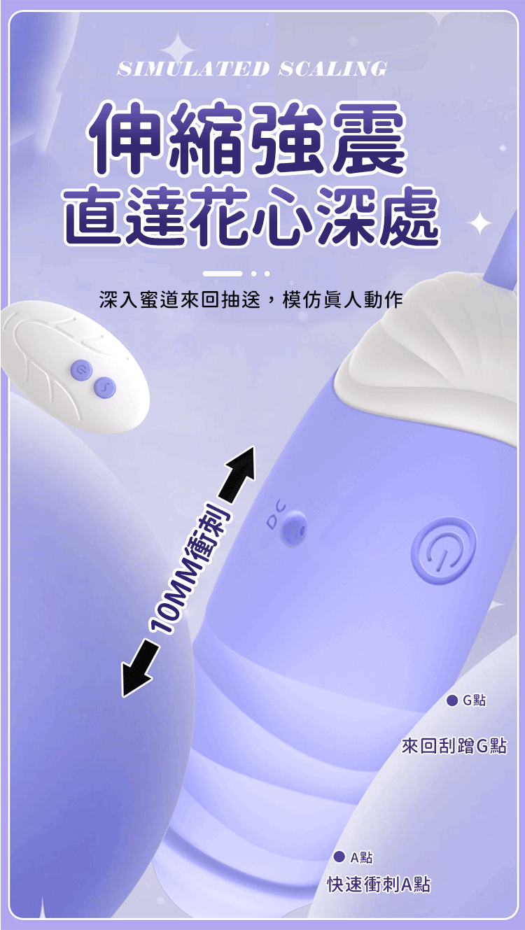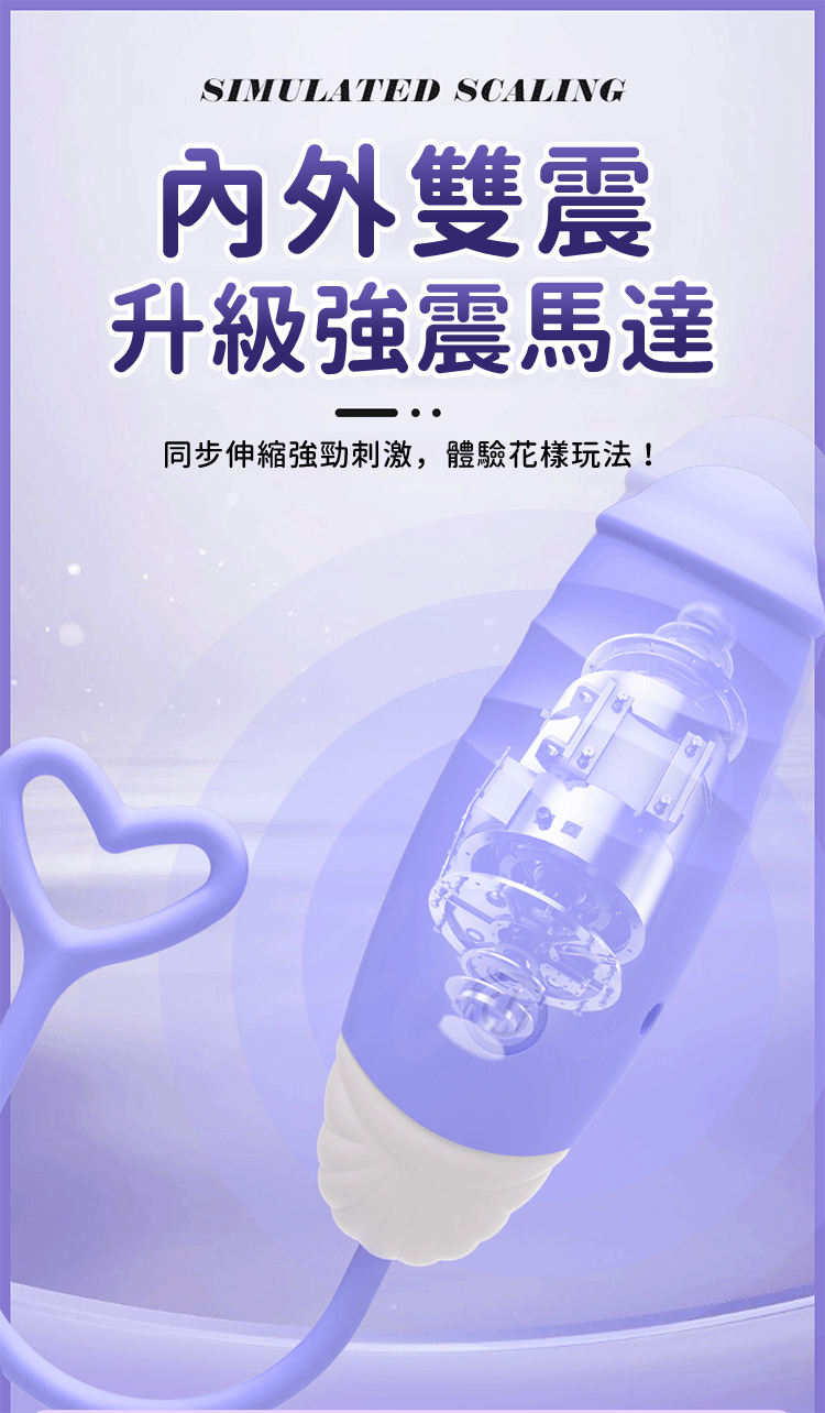 戴上後,仿真人體運動般的體驗將激發你的感官。隨著伸縮運動與強烈震動同步進行,提供層層遞進的刺激感受,讓你盡情探索極致的情趣之旅。