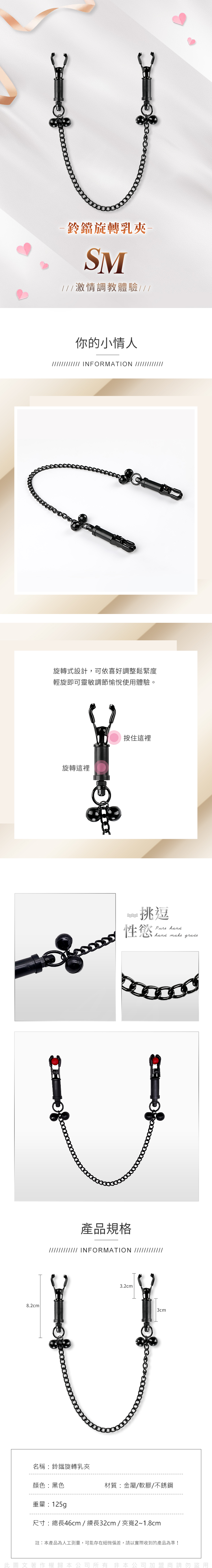 名稱:CICILY|乳頭刺激調情乳夾|金屬大螃蟹夾顏色:黑色重量:125g尺寸:總長46cm/練長32cm/夾寬2~1.8cm材質:金屬/軟膠/不銹鋼註:本產品為人工測量,可能存在細微偏差,請實際收到的產品為準!