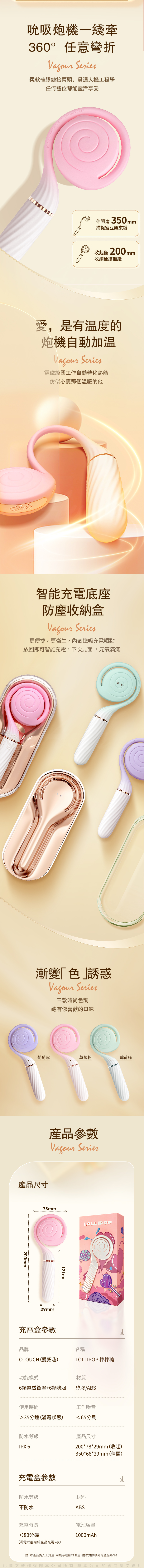 功能模式:6頻電磁衝擊+6頻吮吸