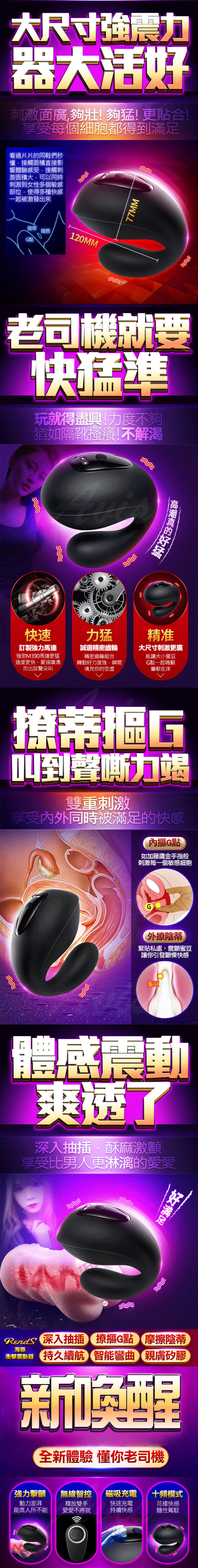 .商品功能:RENDS-海豚 10段變頻黑色衝擊摳G撩蒂遙控震動跳蛋