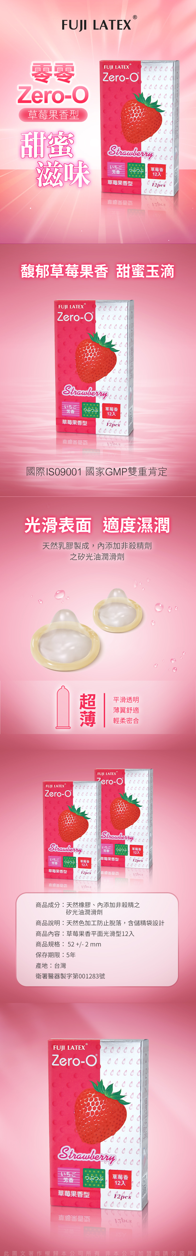 ZERO-0 零零系列|FUJI LATEX 衛生套 保險套|草莓果香型 12入