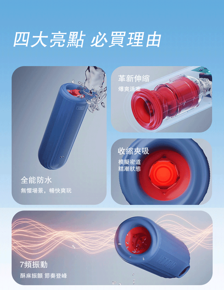 夾吸伸縮設計:獨特的夾吸伸縮功能,帶來如同海王般強烈的吸附與伸縮感,為您提供前所未有的沉浸式體驗。