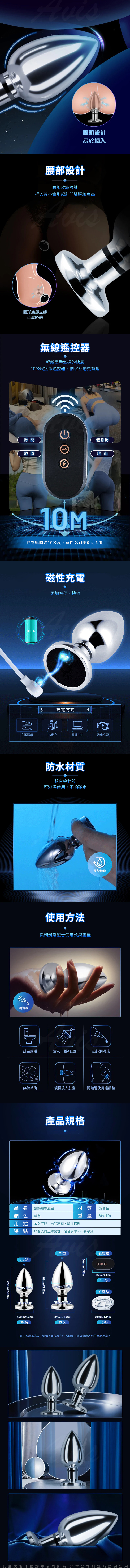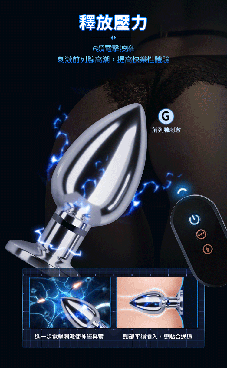 品名:蜜探|震動+電擊遙控|後庭刺激金屬肛塞