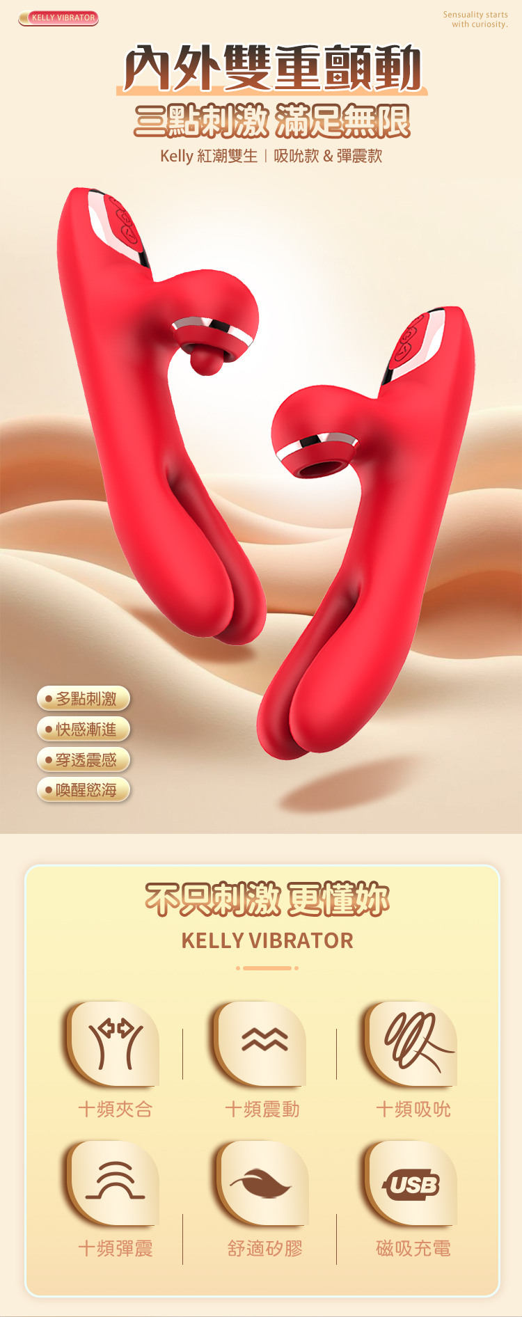 夾乳、吮吸、震動三效合一,Kelly 吸吮款讓你從前戲到高潮全程沉浸!