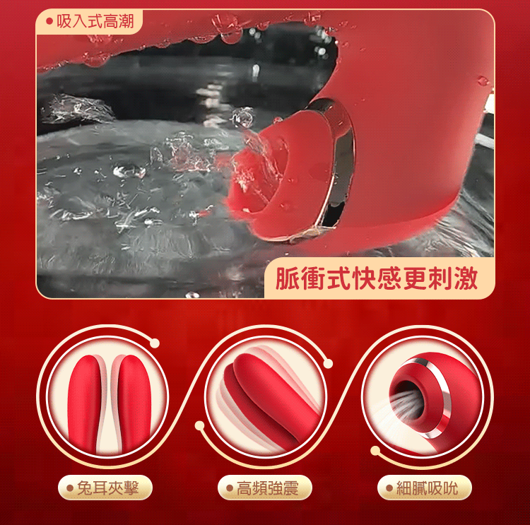 兔耳造型柔韌貼合乳頭與豆豆,主體深入蜜點震顫不止,結合負壓吮吸快感,讓妳身體深處每一寸都被愛撫挑逗!