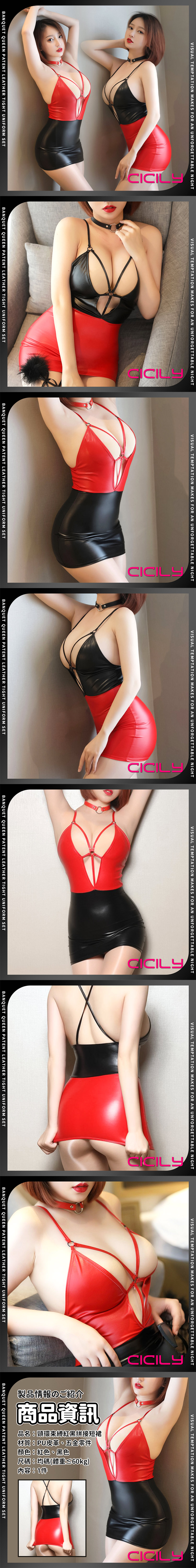 CICILY|上紅下黑撞色超短裙+紅色頸環