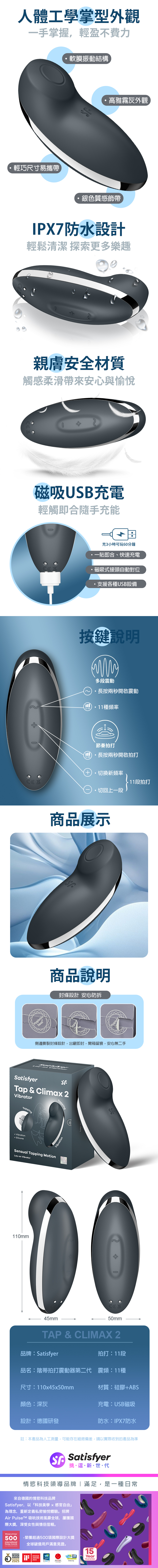 品名:Satisfyer|Tap & Climax 2|陰蒂拍打震動器 黑