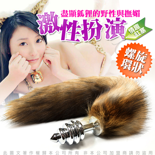 小小狐狸精尾巴+不銹鋼後庭肛塞 螺紋造型